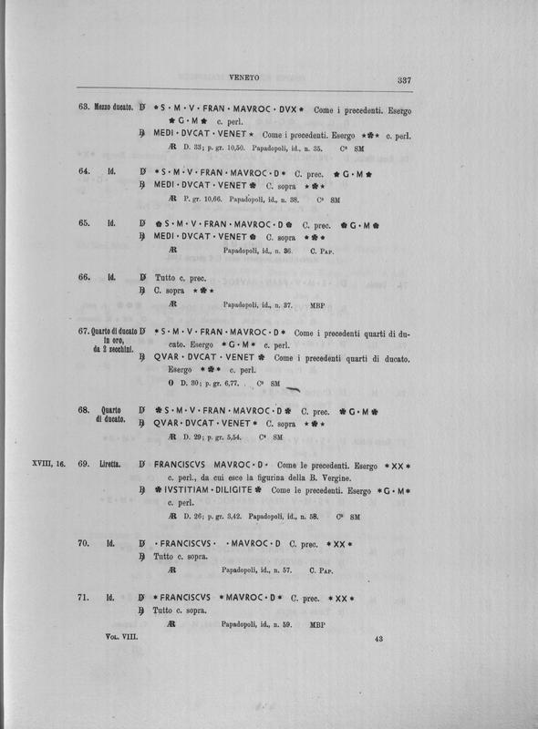 Corpus nummorum italicorum : primo tentativo di un catalogo generale delle monete medievali e moderne coniate in Italia o da italiani in altri paesi , 8: Veneto : Venezia. 2, Da Leonardo Dona' alla chiusura della zecca
