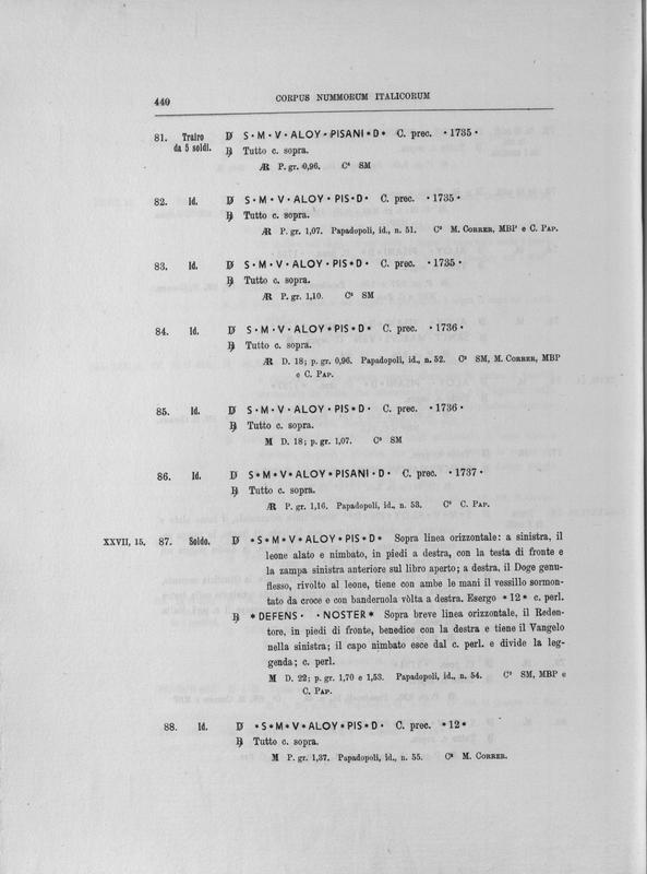 Corpus nummorum italicorum : primo tentativo di un catalogo generale delle monete medievali e moderne coniate in Italia o da italiani in altri paesi , 8: Veneto : Venezia. 2, Da Leonardo Dona' alla chiusura della zecca