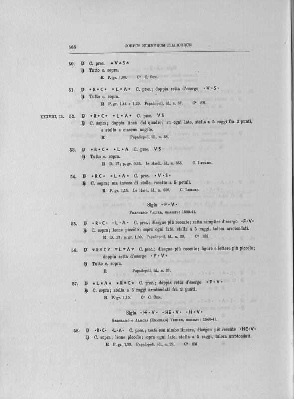 Corpus nummorum italicorum : primo tentativo di un catalogo generale delle monete medievali e moderne coniate in Italia o da italiani in altri paesi , 8: Veneto : Venezia. 2, Da Leonardo Dona' alla chiusura della zecca