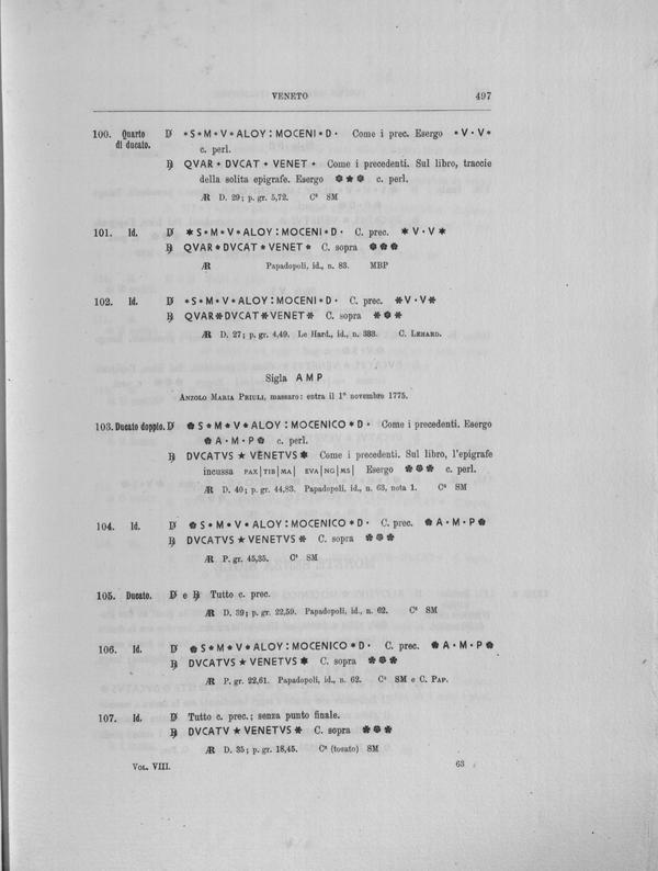 Corpus nummorum italicorum : primo tentativo di un catalogo generale delle monete medievali e moderne coniate in Italia o da italiani in altri paesi , 8: Veneto : Venezia. 2, Da Leonardo Dona' alla chiusura della zecca