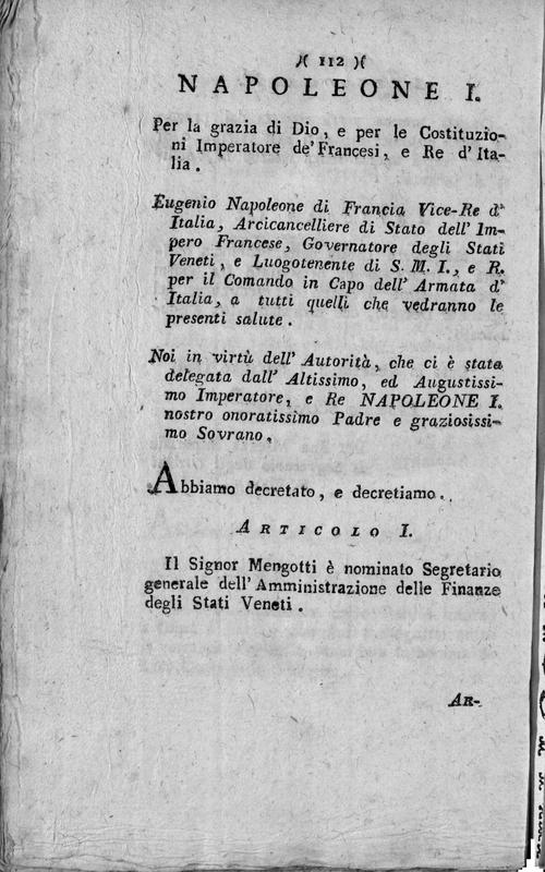 Collezione di carte pubbliche uffiziali e governative dal momento della entrata in Venezia dell'Armata Francese. Tomo primo