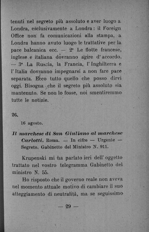 L'intervento dell'Italia nei documenti segreti dell'intesa