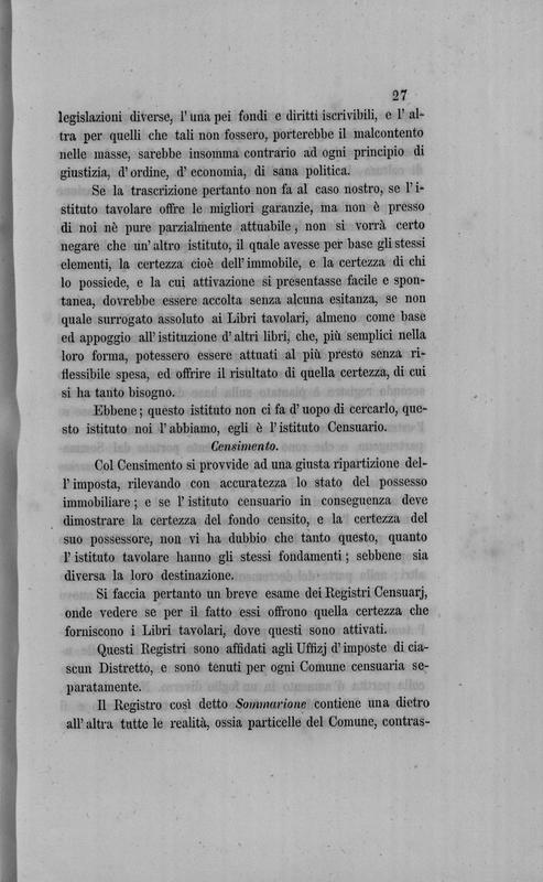 Progetto di legge della Giunta provinciale dalmata sui libri fondiarii da istituirsi in Dalmazia