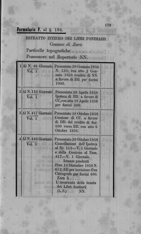 Progetto di legge della Giunta provinciale dalmata sui libri fondiarii da istituirsi in Dalmazia