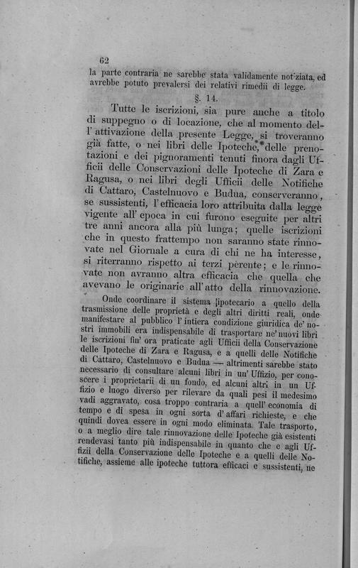 Progetto di legge della Giunta provinciale dalmata sui libri fondiarii da istituirsi in Dalmazia