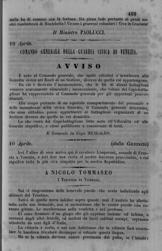Raccolta per ordine cronologico di tutti gli atti, decreti, nomine ecc. del governo provvisorio della Repubblica veneta, [...] Tomo I. Parte II.