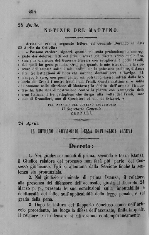 Raccolta per ordine cronologico di tutti gli atti, decreti, nomine ecc. del governo provvisorio della Repubblica veneta, [...] Tomo I. Parte II.