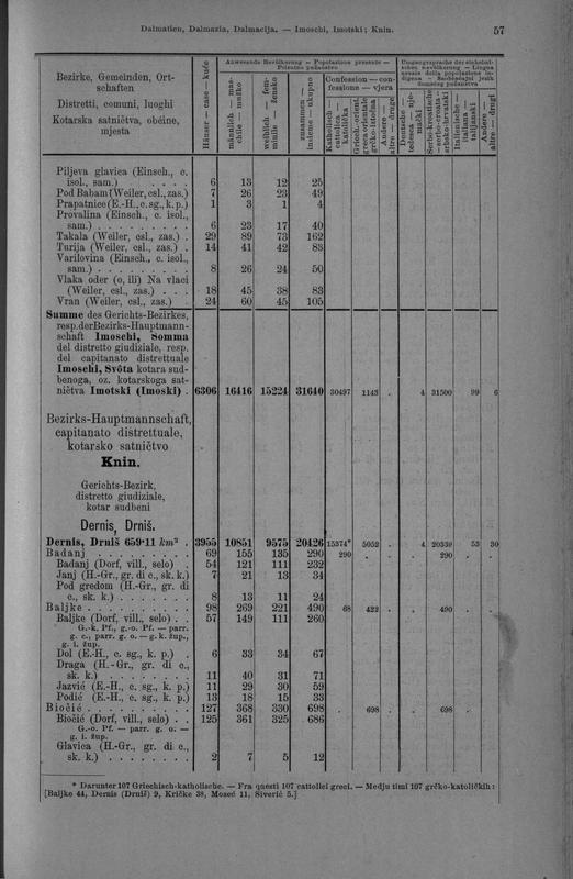Special-Orts-Repertorium von Dalmatien: Neubearbeitung auf Grund der Ergebnisse der Volkszahlung vom 31. December 1890