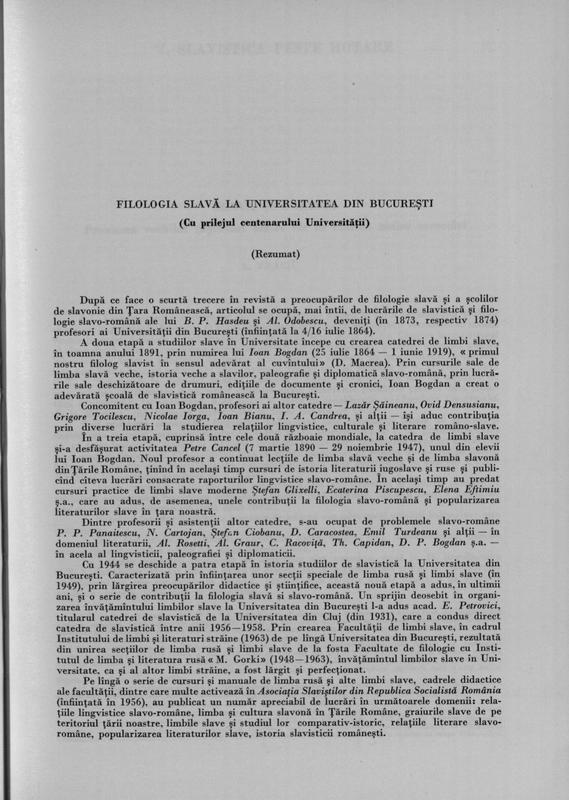 Romanoslavica XII Filologie. Asociatia Slavistilor din Republica Socialista Romania