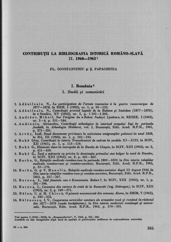 Romanoslavica XI Istorie. Asociatia Slavistilor din Republica Populara Romina