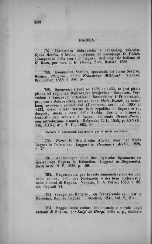 Supplementi al saggio bibliografico della Dalmazia e del Montenegro di Giuseppe Valentinelli