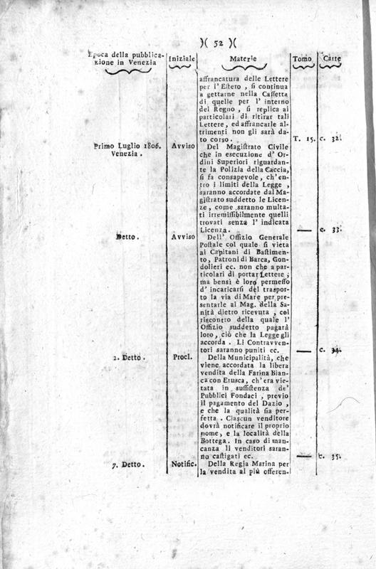 Collezione di carte pubbliche uffiziali e governative dal momento della entrata in Venezia dell'Armata Francese. Tomo decimosettimo