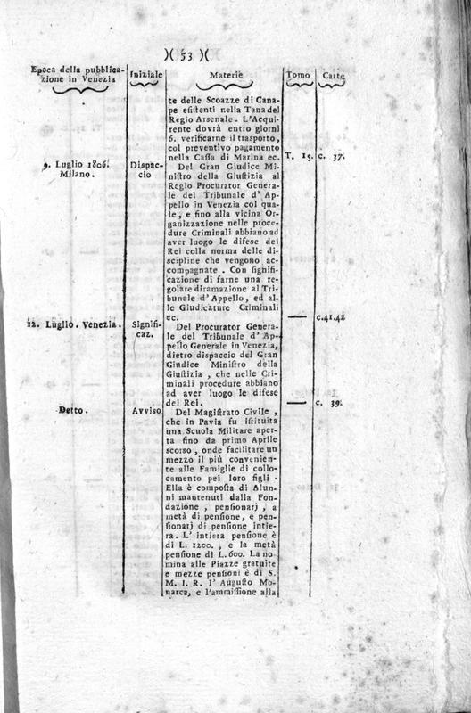 Collezione di carte pubbliche uffiziali e governative dal momento della entrata in Venezia dell'Armata Francese. Tomo decimosettimo
