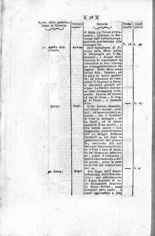 Collezione di carte pubbliche uffiziali e governative dal momento della entrata in Venezia dell'Armata Francese. Tomo decimosettimo