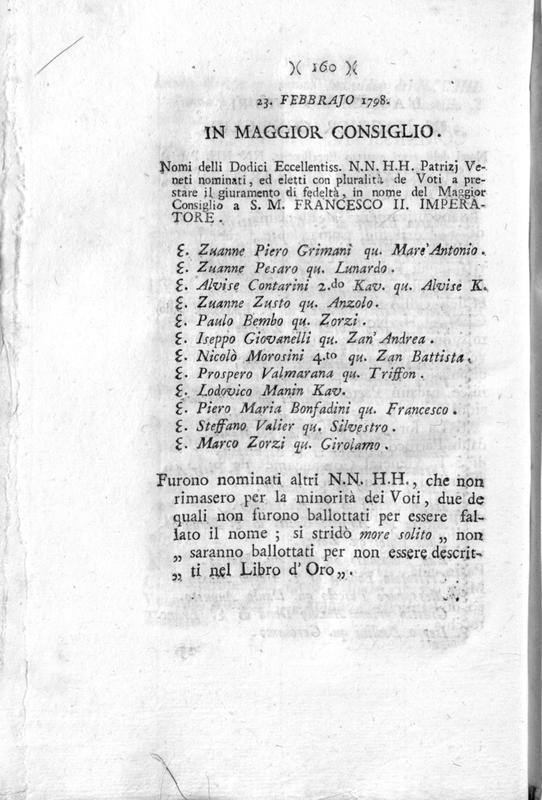 Nuova raccolta di tutte le carte pubbliche, leggi, e proclami stampate, ed esposte ne' luoghi piu' frequentati di Venezia e suoi dipartimenti dopo il felice ingresso dell'armi austriache di S.M. Imperatore, e Re nel Veneto Stato. Volume secondo