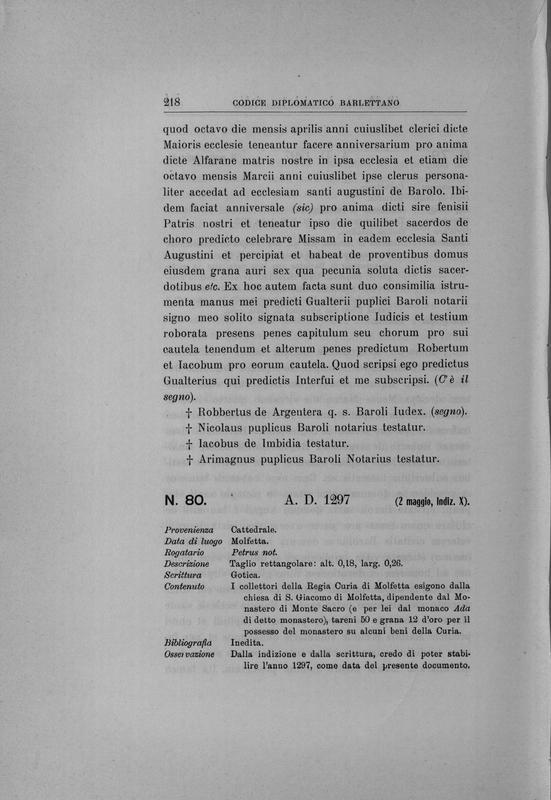 Codice diplomatico barlettano , edito a cura della associazione Amici dell'arte e della storia barlettana per il can. Salvatore Santeramo , 1