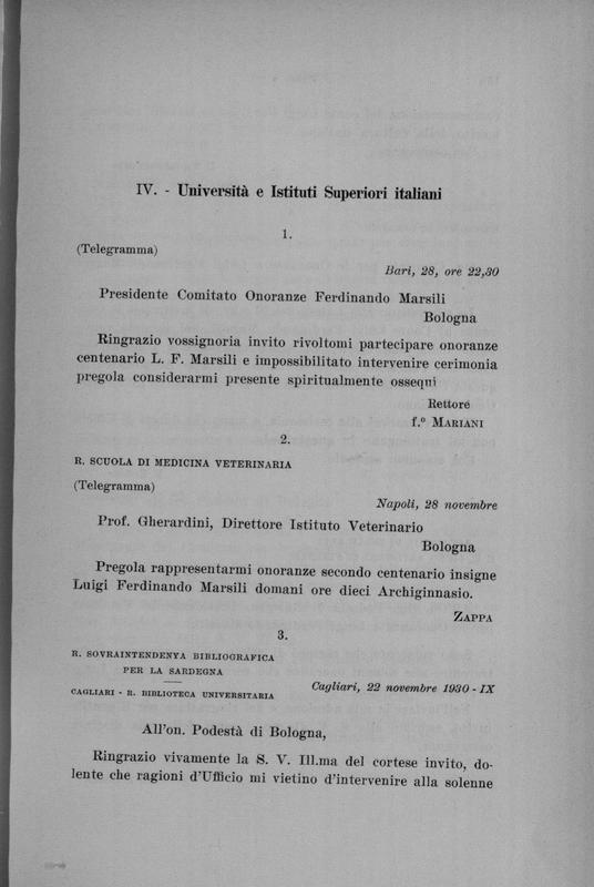 Celebrazione di Luigi Ferdinando Marsili nel secondo centenario dalla morte, 29-30 novembre 1930 : relazione delle cerimonie e discorsi a cura del Comitato ordinatore (R. Accademia delle scienze dell'Istituto di Bologna)