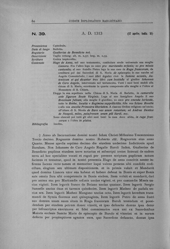 Codice diplomatico barlettano , edito a cura della associazione Amici dell'arte e della storia barlettana per il can. Salvatore Santeramo , 2
