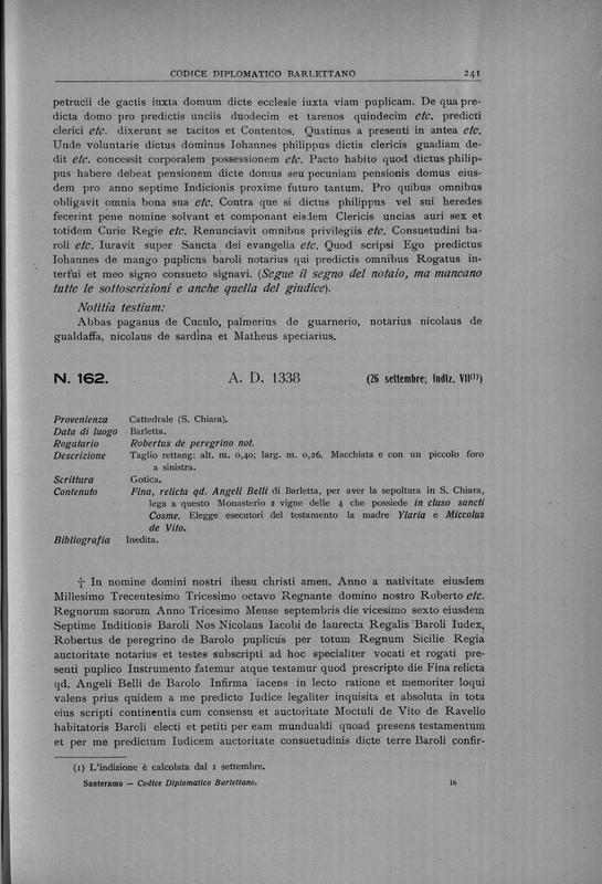 Codice diplomatico barlettano , edito a cura della associazione Amici dell'arte e della storia barlettana per il can. Salvatore Santeramo , 2