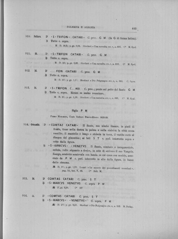 Corpus nummorum italicorum : primo tentativo di un catalogo generale delle monete medievali e moderne coniate in Italia o da italiani in altri paesi , 6: Veneto : zecche minori. Dalmazia, Albania