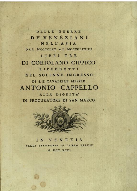 Delle guerre de Veneziani nell'Asia dal 1470 al 1474 libri tre di Coriolano Cippico