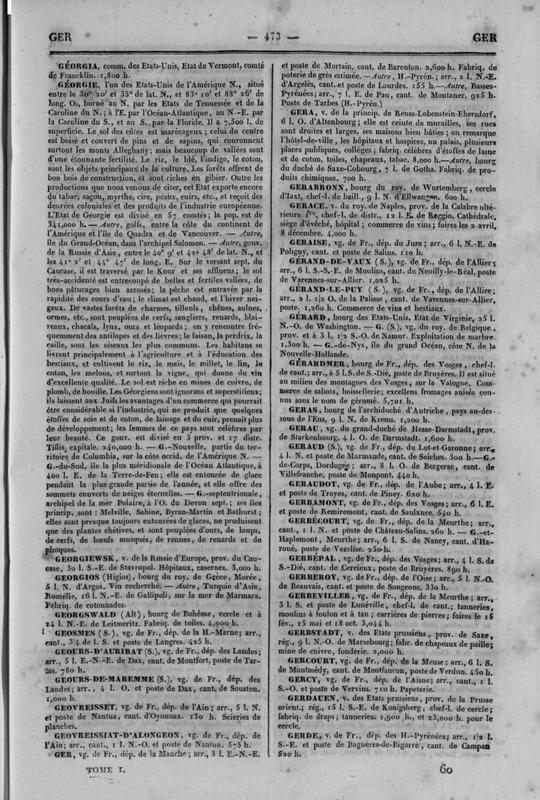 Dictionnaire universel de geographie moderne, ou description physique, politique et historique de toutes les contrees et de tous les lieux remarquables de la terre par A. M. Perrot et Alex Aragon. Tome premier A-G