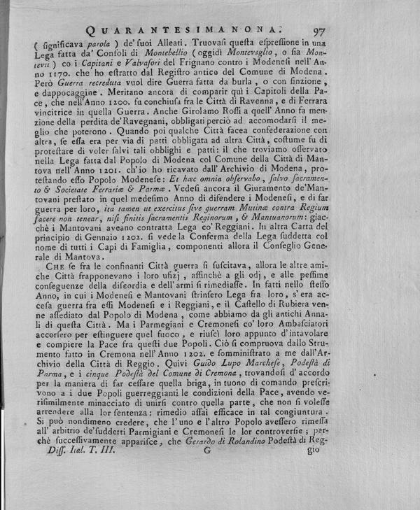 Dissertazioni sopra le antichita' italiane , di Lodovico Antonio Muratori ; con note . Tomo terzo